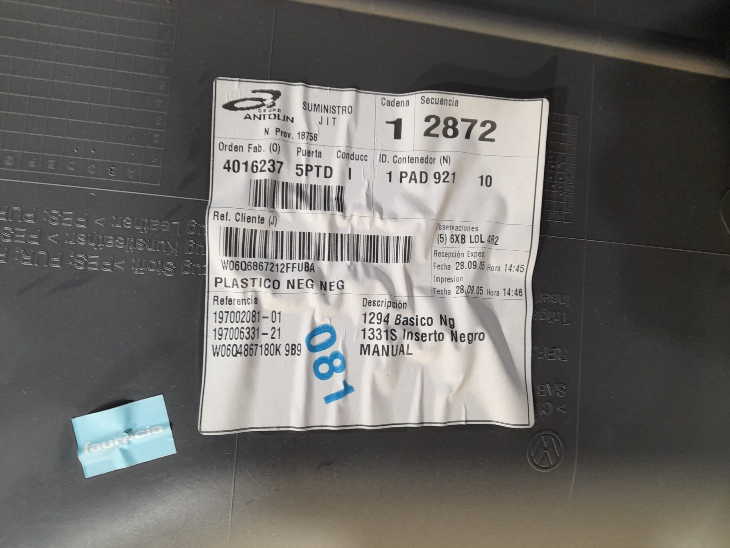 GUARNECIDO PUERTA TRASERA DERECHA PEUGEOT 206 BERLINA 1.9 DIESEL