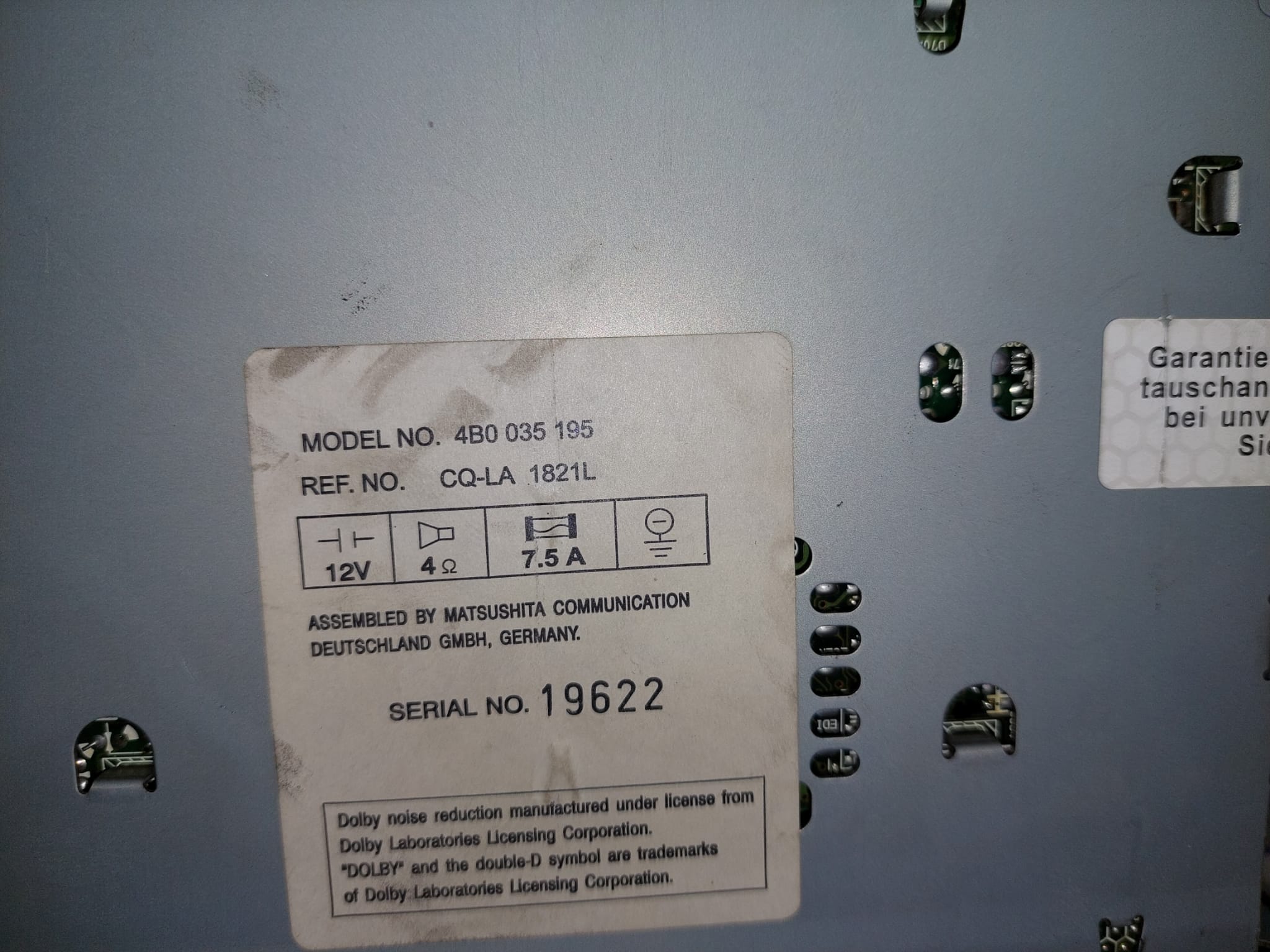 SISTEMA AUDIO / RADIO CD VOLKSWAGEN CADDY KA/KB (2K) 1.9 TDI