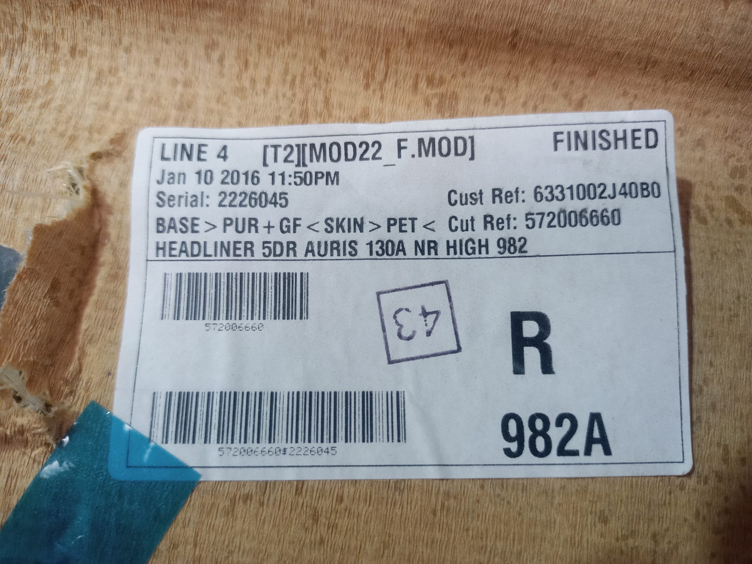 TECHO INTERIOR TOYOTA AURIS TOURING SPORTS (E18) ACTIVE