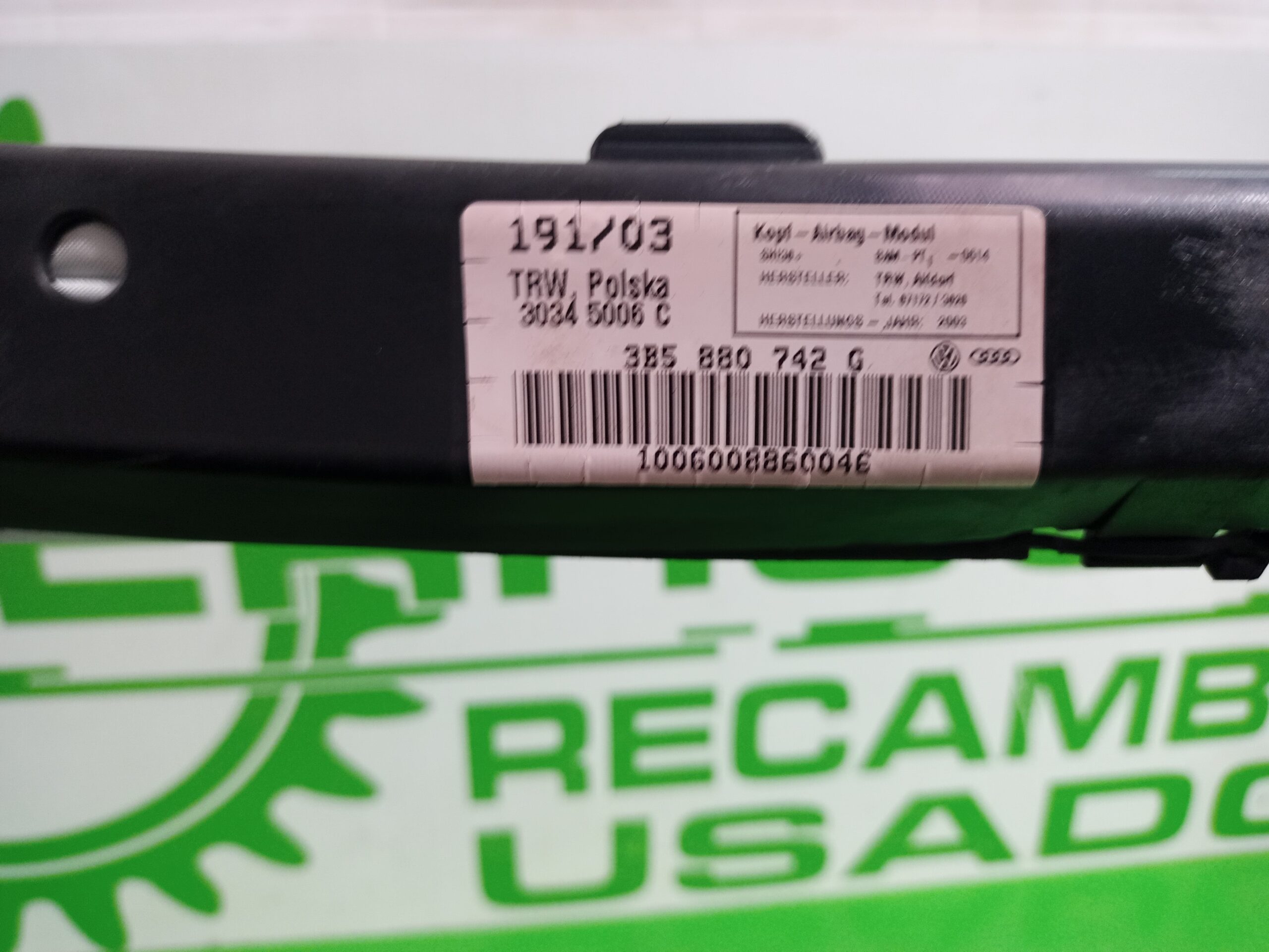 AIRBAG CORTINA DELANTERO DERECHO VOLKSWAGEN PASSAT BERLINA (3B3) 1.6